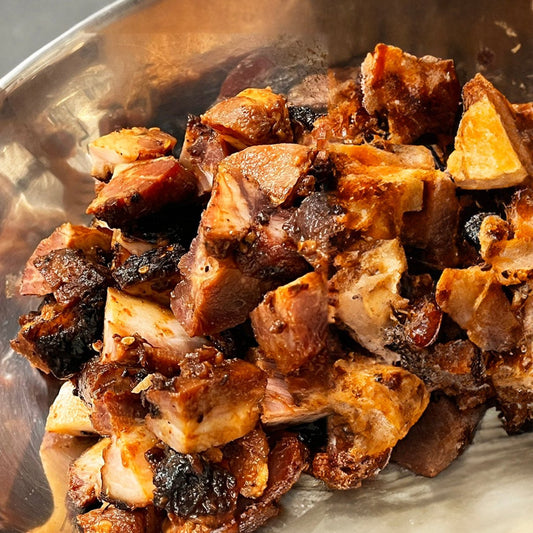 香港式の蜜汁叉焼を基に作っています。オリジナルブレンドの香粉と香味野菜たっぷりの焦がし醤油の蜜タレを何度も塗り重ねながら丁寧に焼げた当店こだわりの逸品。米に合うのはもちろんのこと、お酒のおつまみとしても最高です。焼きたての風味をそのまま真空パックに閉じ込めてお届けします。家庭では味わえない本格焼豚を是非お召し上がりください。